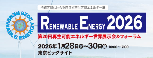 2026年1月28(水)~1月30日(金)に、東京ビックサイト南ホールにて開催される「第20回再生可能エネルギー世界展示会&フォーラム」に出展いたします。